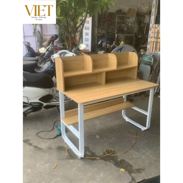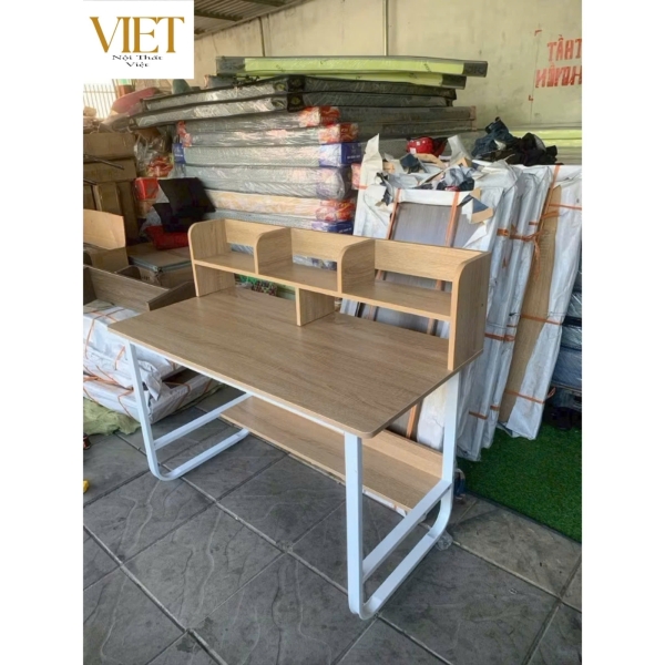BÀN LÀM VIỆC BÀN HỌC KÈM GIÁ SÁCH - HÀNG LẮP RÁP - ĐẸP - GIÁ RẺ - CHẤT LƯỢNG CAO Bàn làm việc, bàn học kết hợp với giá sách là một trong những mẫu bàn được nhiều người ưa chuộng hiện nay bởi thiết kế rất trẻ trung,tiện dụng và hiện đại. Không chỉ vậy, nếu biết cách sắp xếp, bàn làm việc kèm kệ sách còn là món đồ nội thất giúp không gian nhà bạn thêm ấn tượng và sống động hơn. Nội Thất Việt xin chào Quý khách hàng ! Rất hân hạnh được phục vụ tư vấn chi tiết nhất tới Quý khách ạ !!! MÔ TẢ SẢN PHẨM : Thiết kế tối giản – hiện đại, phù hợp nhiều không gian: phòng ngủ, phòng học, phòng làm việc, văn phòng Không gian đặt máy tính rộng rãi, bố trí thoải mái theo chuẩn công thái học Dễ lắp ráp, đi kèm phụ kiện đầy đủ Chất liệu: Gỗ MDF phủ Melamine chống xước – chống nước – dễ lau chùi Chất liệu sản phẩm: - Chân sắt hộp sơn tĩnh điện 25x50cm - Mặt gỗ công nghiệp phủ melamine dày 1.8cm cắt CNC uốn cong bo góc chống gù Kích Thước : 1m2 x 60cm x75cm