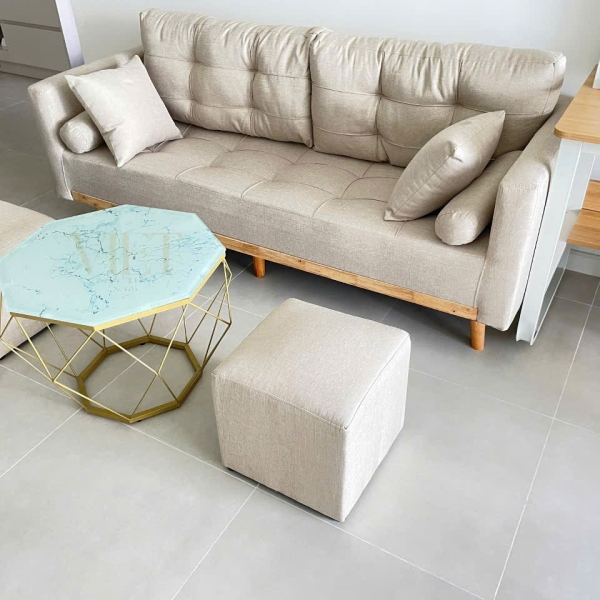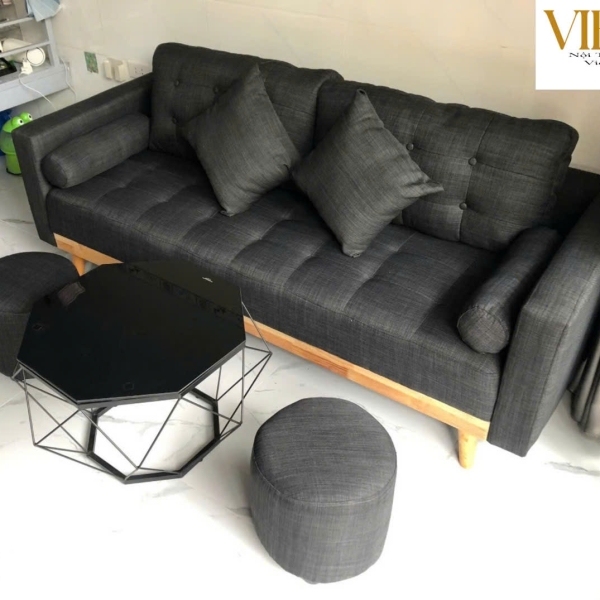 Khung: Gỗ dầu chắc chắn, chân gỗ cao su hoặc inox
